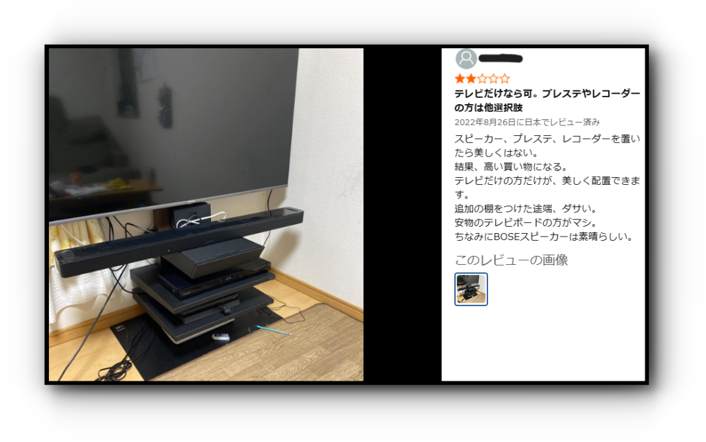 さらに、棚板やサウンドバーを取り付けられる点も便利だという声がありました。