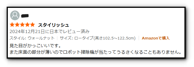 床に接する部分が薄いため、ロボット掃除機が当たらずに通れるという口コミもあり、日常の掃除のしやすさという点でもメリットがあります。