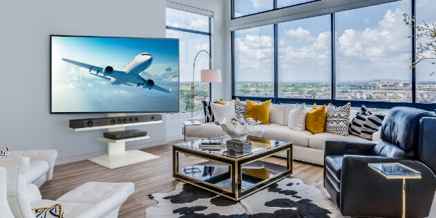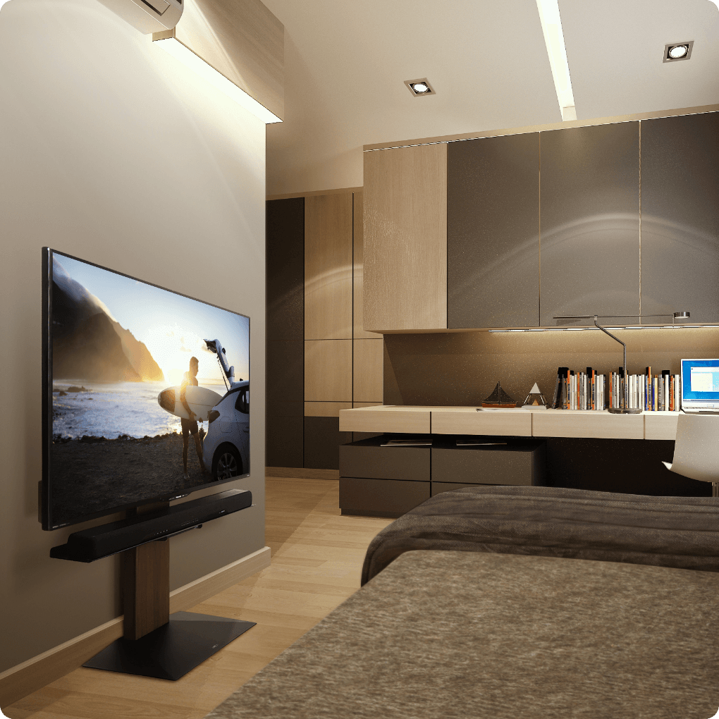 コンパクトタイプはその名の通り、省スペースで導入できるモデル。特に狭い部屋ほどテレビ台が邪魔になりがちですが、V3コンパクトならスタンド幅がスリムなため部屋が広く見え、ミニマルなインテリアに仕上がります。