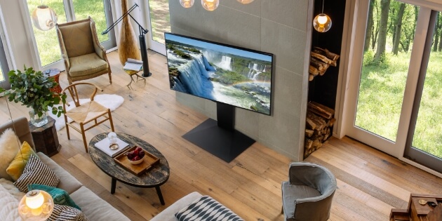 32~80インチのテレビに対応。ハイスペックで人気な「WALL V3」の良さはそのままに、さらに左右の首振り機能を搭載した「V3 SW」。テレビの向きを最適な角度に調整できるため、テレビを見る位置に合わせたり、窓からの反射を避けて視聴することが可能。