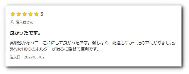 背面の配線処理や収納についても評価は高く、外付けHDDを背面に隠せる点を便利だと感じている人が見られます。